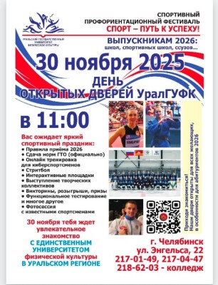 27.11.2025 Единственный спортивный университет на Урале приглашает на день открытых дверей! 30 ноября в 11:00!
